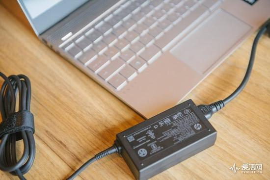 你甚至可以把惠普薄锐ENVY 13笔记本看成一个巨大的充电宝,6芯53.6Whr 6962mAh电池能让笔记本自身支撑10小时以上续航,自带的65W电源能够在90分钟内充满90%电量。并且两个USB Type-C和机身右侧的USB Type-A接口能够支持关机充电,只要准备好相应的数据线,至少省略了出门再携带充电宝的麻烦。但笔记本电源仍然为最传统的样式,与日新月异的本体显得有些格格不入。