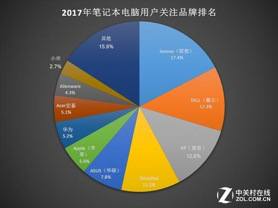 2017年笔记本电脑用户关注品类分布