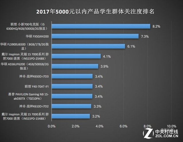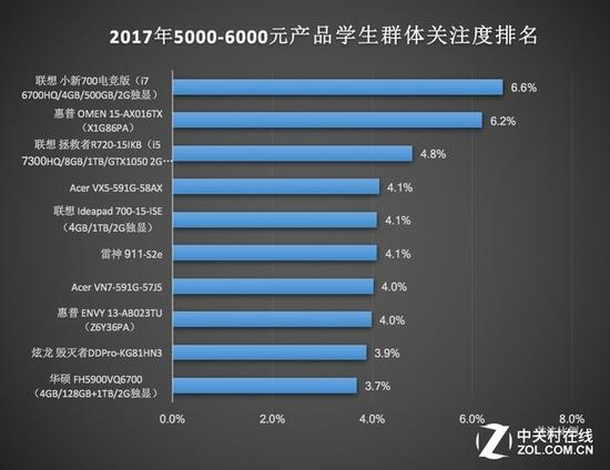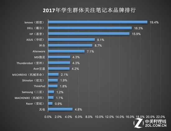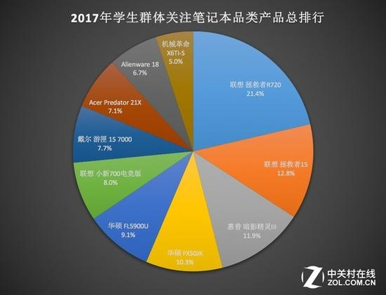 2017年学生群体关注笔记本品类产品排行