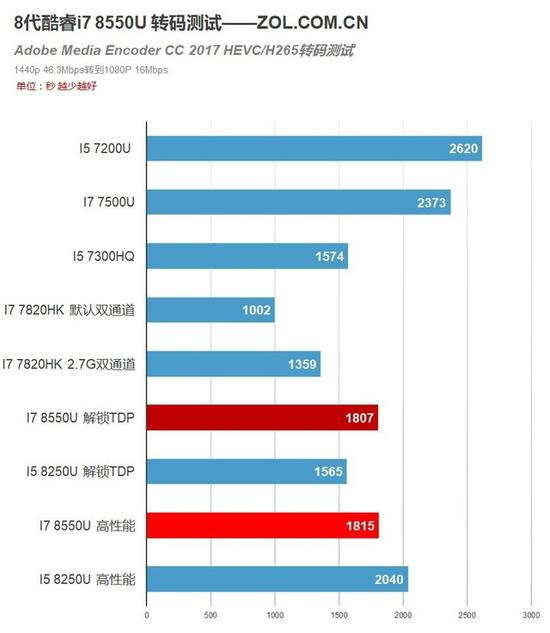 第八代酷睿目前已经发布了低电压系列处理器,根据ZOL的相关测试,所有的Kabylake Refresh 系列处理器都无法坚守默认睿频规则给出的四核满载睿频数值。以i7 8550U为例,不论何种厚度、何种散热规模的笔记本,37倍频的满载睿频都是不可能稳定下来的。