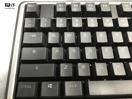 Cherry MX BOARD 5.0配备白色背光,可调节亮度并实现不同灯效,另外这款键盘采用独特的Cherry游戏字体,你会发现键帽上的字体与普通键盘有明显区别,键盘采用双色PBT键帽,保证了键帽的耐磨性。同时键帽上带有防油涂层,从使用效果上看非常不错,几乎不易粘上指纹等。键盘具有很好的亲肤质感,并且键盘的透光会更均匀。