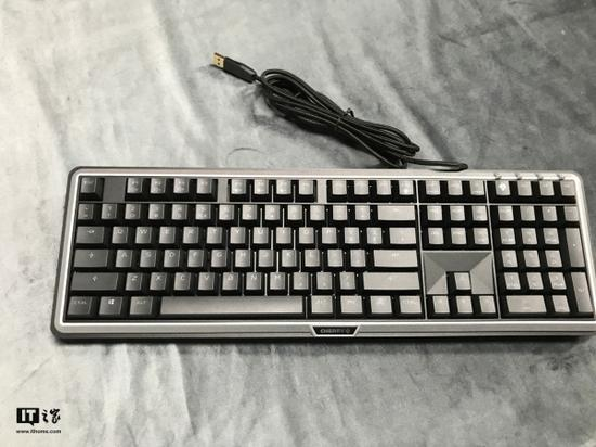 将Cherry MX BOARD 5.0键盘取出,就是下面的样子了。键盘的重量略重,单手持握比较吃力,但也从侧面说明MX BOARD 5.0用料比较充足,据悉键盘在内部还增加了一块稳固钢板,在摆放上更显稳重。