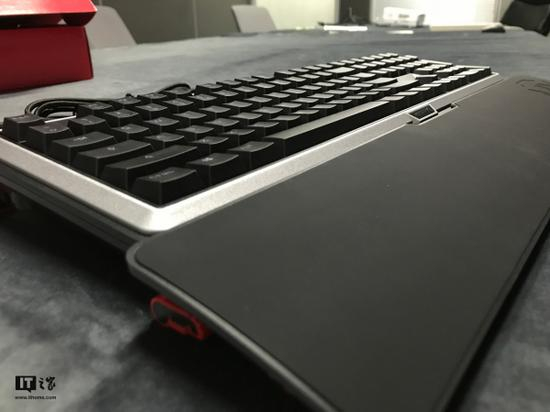 在开箱的时候,本着好奇的心态不断发掘,在键盘之下发现了隔层,里面就是这块大大的掌托了,其长度要比MX BOARD 5.0键盘还要长一小块,这个设计并不难猜到,是为了让手掌有更好的活动空间并依然处于掌托之上,舒适空间范围有保证。