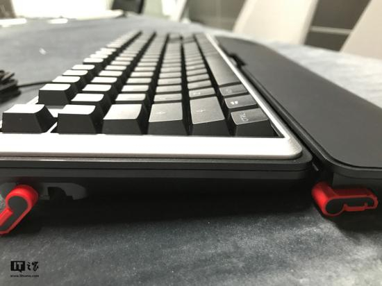 笔者比较喜欢的是,将掌托的前部调节到翘高,而下部采用默认的平底支撑,形成一定的倾斜弧度。值得注意的是,键盘和掌托之间比较容易扣合,当扣合之后,键盘的高度也会相应的提高,是否舒适大家自行调节到满意状态,就笔者而言,这种调节并不复杂,凭借你的感觉就可以快速实现。