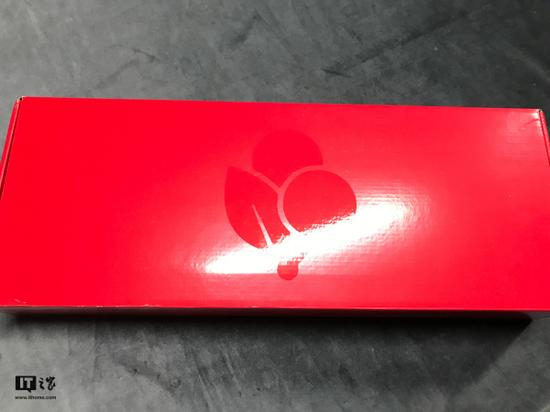 将黑色盒子中的包含键盘部分抽取出来则是另一个内盒,外观使用了非常鲜艳的樱桃红色,仔细看上面有大大的樱桃的印记Logo。里面分为两层,上面一层是Cherry MX BOARD 5.0键盘本体,下面是附带的键盘掌托,掌托部分后面会单独说明。