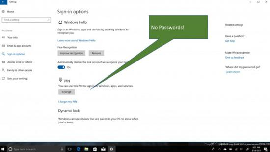自Build 17093版本开始,Windows 10 S系统将自动让你体验无密码操作。用户在完成Windows Hello设置之后就不再需要输入密码。
