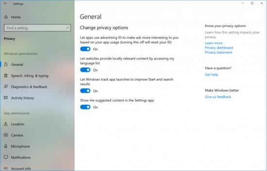 Windows App权限: 在导航面板中优化隐私设置 在隐私设置页面优化界面