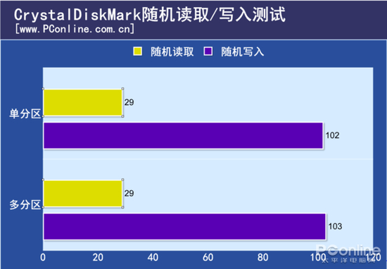 测试小结:在CrystalDiskMark 6测试中,同一块固态硬盘在只分一个区和分多个区域的随机读写和连续读写性能都没有太大差异,不过这也可能是软件的问题,我们再使用其他软件测试一下。