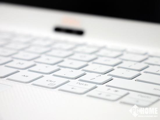 C面键盘采用孤岛式键盘,虽然是15.6英寸机型,但并没有配备数字小键盘,因此键位之间的距离较大。实际触感方面,键程略浅但反馈还是比较清晰的。键盘带有两级白色背光,方便暗光环境下使用。触控版表面覆盖了一层玻璃,操作是比较顺滑的。