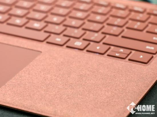 微软Surface Laptop 2的机身部分采用楔形设计,前薄后厚,整体平均厚度为14.48mm,配合1.25kg的重量,整机便携性能很好。灰粉金对于众多女性用户来说,还是非常的具有吸引力。C面设计,Surface Laptop 2依然采用了Alcantara(中文名称殴缔兰)材质,这种材料集柔软性佳、耐用/耐磨性强、极易保养等优点于一身,在汽车内部装饰广泛使用。触感方面既没有金属的冰冷感,也没有翻毛皮的粘腻感,还是比较舒服的。