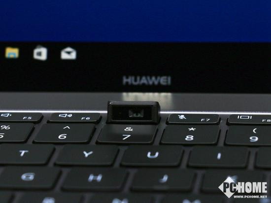 MateBook X Pro采用了创新性质的隐藏式摄像头解决方案,摄像头被隐藏到了键盘最上方的F键中,位于F6-F7之间,按压之后可以打开摄像头,工作时并伴有指示灯,不用时可以隐藏到键盘中间。不过由于位置处在C面上,并且向上开启的角度有限。
