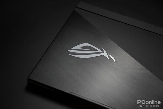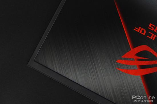 ROG 冰刃3甄姬造型与前几代产品差距不大。机身整洁干练,金属拉丝表面,配合细腻涂层,观感清爽雅致,颇有高段位商务本的清新风范,但同时具备很多斜切面,棱角分明、爽朗大气。其A面一道左上到右下的对角线将金属拉丝A面斜切为不同方向纹理的两部分,其镁铝合金材质在灯光下熠熠生辉,灵动非常。