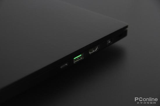 雷蛇灵刃15机身左侧接口分别为电源接口、2×USB3.1和3.5mm音频口;机身右侧接口分别为雷电3、USB3.1、HDMI 2.0b、mDP1.4和安全锁孔。接口数量、种类在轻薄游戏本中表现还不错,通过雷电3再接上显卡扩展坞就更爽了。