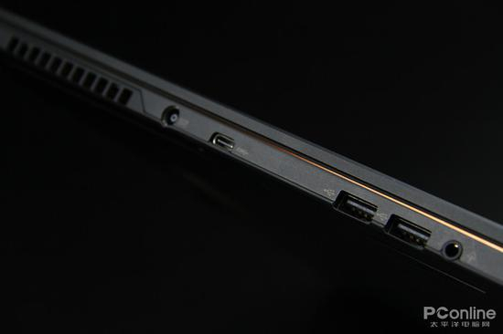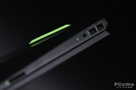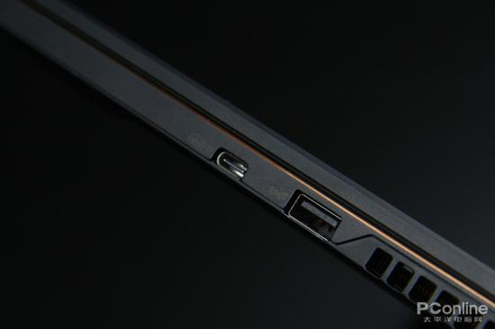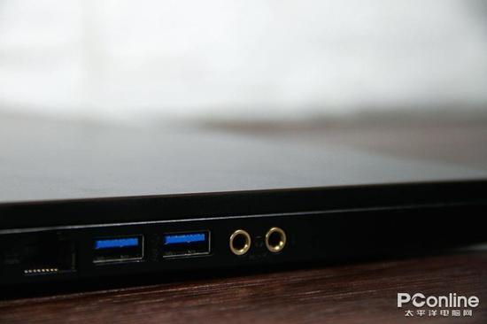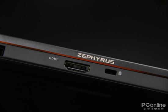 ROG 冰刃3GM501GS接口布置在机身两侧,相互之间间隔比较大,3个USB 3.1 Gen2接口 ,1个Thunderbolt/DisplayPort/USB 3.1 Gen2 三合一接口,1个HDMI接口,1个防盗锁扣,音频接口,耳机和麦克风3.5 mm立体声插孔,让ROG 冰刃3有较好的泛用性。
