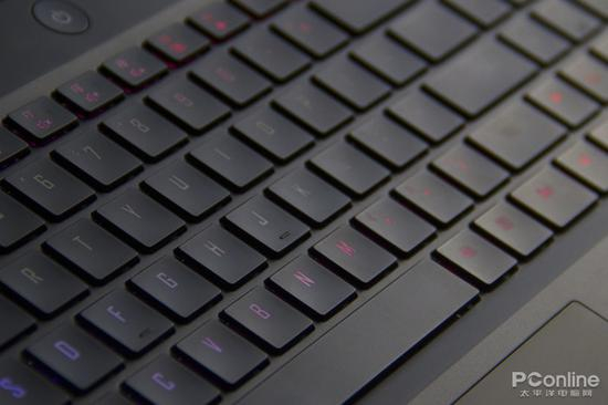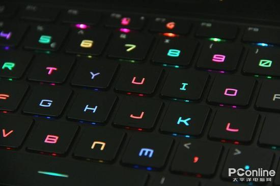 而微星GS65的键盘依旧可圈可点,键程和反馈在此次测试中都居上层,键盘的灯光设计更是别具一格,除了拥有1670万种可选颜色之外,微星GS65还拥有闪动效果,让整台机器显得动感十足,这样的设计也具有非常强的实用性,让键盘的每个键位都更加容易辨认,有效提高了输入的正确率。