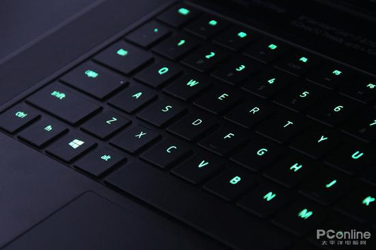 当然,作为一款来自于‘灯厂’的产品,炫彩背光键盘也是不可缺少的。它采用了 CHROMA 幻彩背光键盘,每一颗按键都可以单独设置灯效,非常漂亮。另外值得一提的是,除了灯效,你也可以根据自己在游戏时的使用习惯,来重新自定义每颗按键的功能(比如把空格键键定义为 W 键等等)。
