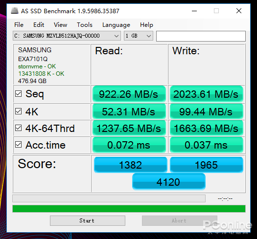 AS SSD Benchmark是款来自德国的SSD测试软件,可以测试连续读写、4K对齐、4KB随机读写和响应时间的表现,并给出综合评分。