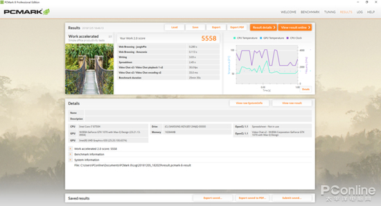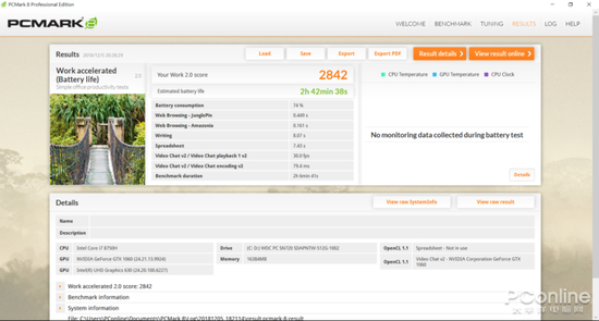 PCmark 8是针对Windows系统的整机性能基准测试软件,Work测试是其中一种测试模式(共5种),主要是模拟普通用户的使用环境,测试项目涵盖了网页浏览、文档处理、图片边间、视频聊天等。