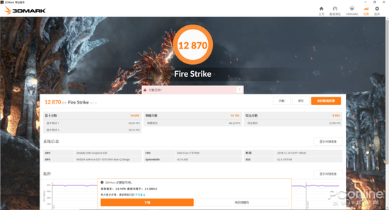 作为游戏本,显卡在实际的使用频率中作用甚至超过处理器。我们分别采用3DMARK的Fire Stirke和Fire Stirke Ultra对显卡进行测试。