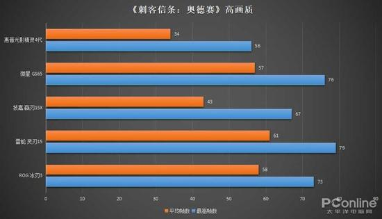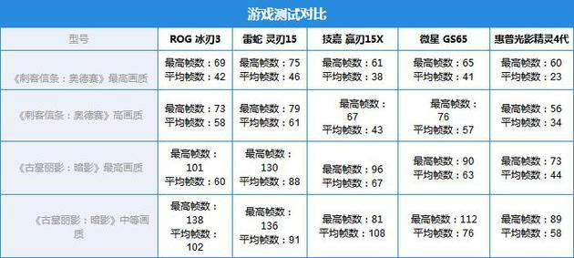 在高画质的《刺客信条:奥德赛》测试中,ROG 冰刃3、雷蛇 灵刃15和微星GS65的平均帧数均在60帧左右,而技嘉 灵刃15X和惠普光影精灵4代平均帧数蚁人不高。