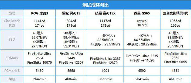 这篇文章我们将对ROG 冰刃3、雷蛇灵刃15、技嘉 Aero 15X、微星 GS65和惠普光影精灵4代这五款轻薄游戏本进行外观、便携性、屏幕属性、性能、游戏等进行系统的横向对比评测,话不多说我们进入正文。