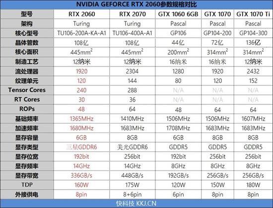 RTX 2060的流处理器规模与GTX 1070同为1920个,远远高于GTX 1060的1280个,160W的TDP也只是比GTX 1070高了10W。至于实际表现如何,还是要看具体的测试。