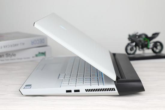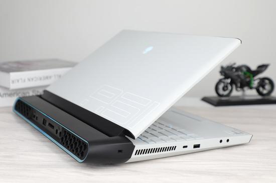 熟悉外星人的玩家都知道,在前几代的产品里,ALIENWARE的外观非常“刚”,满身都充满着金属的质感。外星人Area-51m在外观的配色上,机身被分为两段,后部黑色部分主要承担了散热和后置接口、电源;而前面的配色又包含更具未来的“白夜”和更传统的“月球暗面”,本文展示的就是“白夜”款。