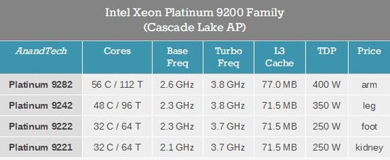 同时注意,铂金9200系列都不是LGA独立封装,而是改成了BGA整合封装,直供OEM,不会单独售卖。