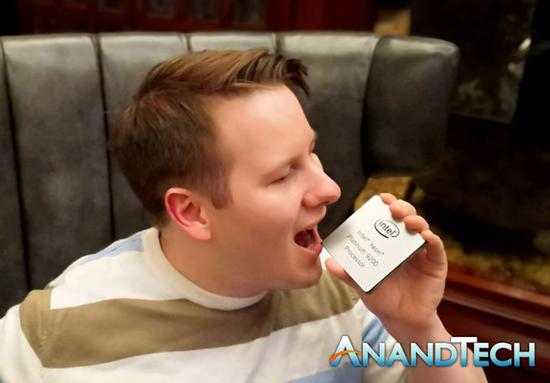 这些处理器只专注于密度,仅限于BGA,因此它们只能作为完整系统由原始设备制造商销售,原始设备制造商实际上从英特尔购买并进行修改。Anandtech网站有机会拿到一颗CPU并拍摄一些照片。该封装尺寸为76.0 x 72.5 mm,是英特尔最大的CPU封装,击败了旧的Intel Pentium Pro,它的尺寸为67.6 x 62.5 mm,AMD的EPYC封装尺寸为75.4 x 58.5 mm。这个封装内部是两个支持XCC的硅片,一个指定主芯片,一个指定从芯片。每个Die本身约694平方毫米。