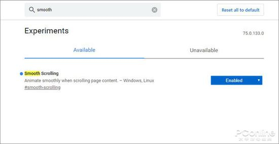 2) 搜索“Smooth Scrolling”,将该Flag设置为启用;
