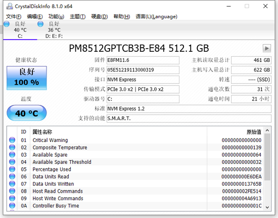 简单看下上面两张图,分别是512G SSD的状态以及2T HDD的传输速率,写入和读取速度都非常理想,保证在3A游戏大作启动和存储数据的时候可以效率更高。