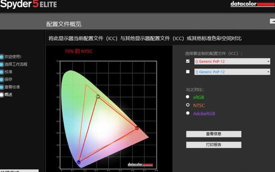 该显示屏达到了144Hz刷新率,官方数据称拥有72%色域和170°可视广角。我们用Spyder5ELITE对其进行测试,可以看到实际测试结果是98%的sRGB色域、70%的NTSC色域、75%的AdobeRGB色域,从实测效果来看,机械革命深海泰坦X9Ti-R的这块儿显示屏色域较广、颜色表现也比较精准,在游戏体验中可以带来更好地视觉显示效果。