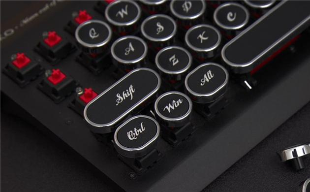 Akko的新机械键盘型号为Old School 68。外观方面,键盘整体颜色为黑色,打字机外观设计。键帽采用复古圆点朋克设计,边缘采用电镀工艺,字体也重新经过设计。