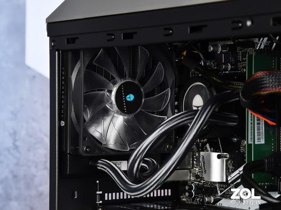 911黑武士Ⅱ代采用了水冷散热系统,我拿到的机器配置了英特尔第九代酷睿i7 9700处理器,120冷排来压应该没什么问题,毕竟9700不带K的话,其实风冷就足够了。不过120冷排更加静音,散热效率更为游刃有余,同时也将机器的性价比提升到了更高程度。