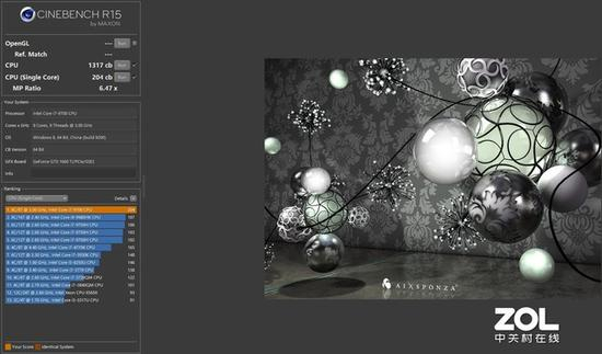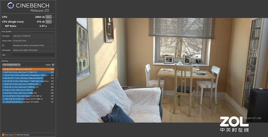 通过CINEBENCH R15和R20进行测试可以看到这颗处理器性能还是相当不错的,其中CINEBENCH R15多核得分1317cb、单核得分204cb;CINEBENCH R20多核得分2860cb、单核得分479cb。从得分来看,英特尔酷睿i7 9700的性能发挥相当出色。