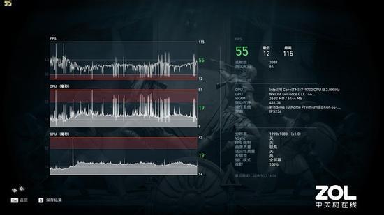 使用内置Benchmark测试得到平均55帧的成绩,画面流畅,属于目前游戏台式机的中高表现。