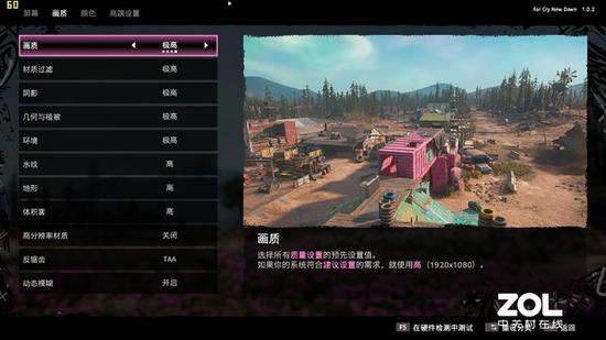 测试画质为1080P、开启高分辨率材质、关闭垂直同步,该设置为最高画质设置。