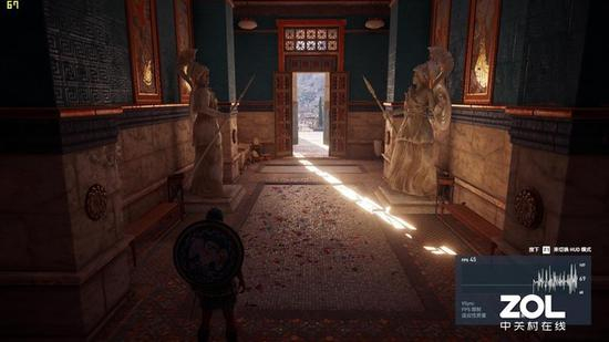 其次是《刺客信条:奥德赛》。这款游戏对硬件性能的要求比较高,不过在1080P分辨率下,GTX 1660Ti应该是足够了。测试时我们将画质调整到最高、关闭垂直同步。