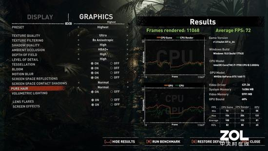 使用游戏自带的Benchmark测试得到平均72帧的成绩,画面非常流畅。