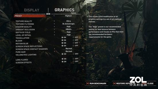 首先是《古墓丽影:暗影》,测试时分辨率为1080P、开启DX12、开启最高画质、关闭垂直同步。