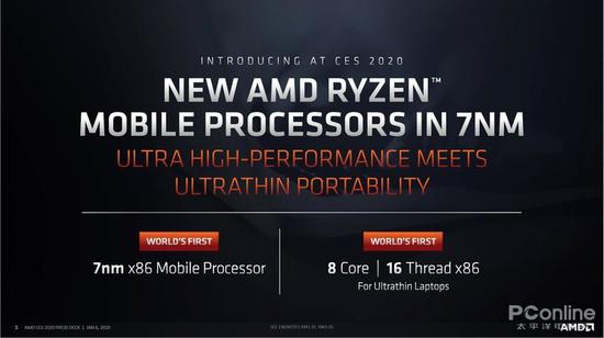 这次发布的移动端处理器也打下了两项记录:世界首款7nm x86移动端处理器与首款轻薄本专用的8核16线程处理器。