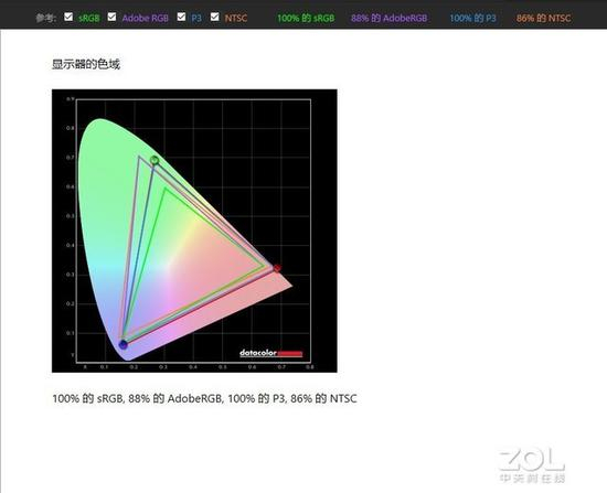 色域覆盖方面,这块屏幕支持100% DCI-P3色域,100% sRGB色域,88% AdobeRGB色域以及86% NTSC色域,四大色域覆盖范围非常广,适合各类设计用户使用。从色准和色域覆盖来看,ProArt Q17这块显示屏已经达到专业水准。