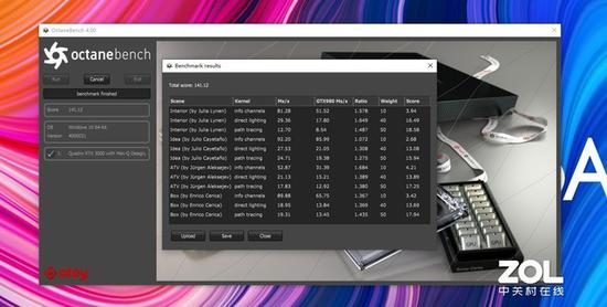 Octanebench是一款强大的渲染测试工具,我们所用的最新版Octanebench 4.0以GTX 980独显作为性能参照。从测试结果来看,Quadro RTX 3000 Max-Q性能和效率远超后者,能够在渲染加速中带来更为高效的表现。