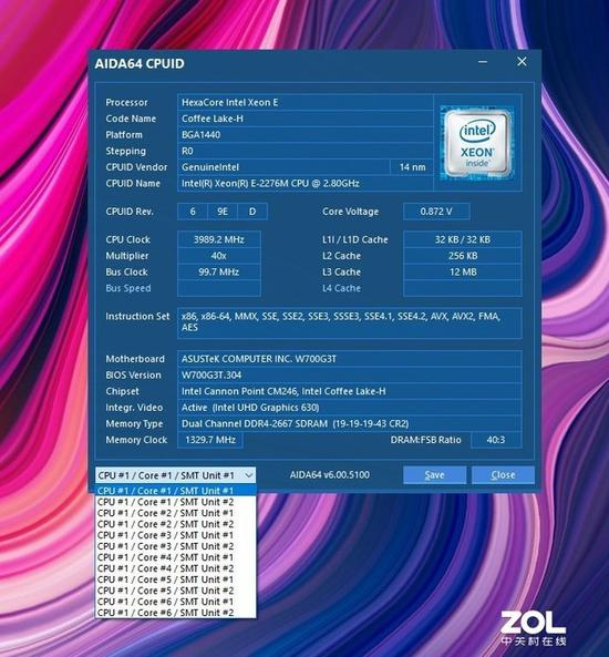 华硕ProArt Q17配备了专业级的英特尔至强E-2276M处理器,这颗处理器基于14nm制程工艺打造,主频2.8GHz,睿频加速4.7GHz,采用6核12线程设计,三级缓存12MB,标准TDP 45W。从规格来看,这颗处理器与消费级的英特尔酷睿i7 9750H处理器相仿,只是在主频和睿频方面比i7 9750H高0.2GHz。