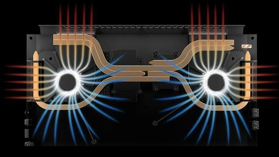 拥有如此高效的硬件,如果散热没做好的话,在实际应用中也是白搭。ProArt Q17内部采用五铜管双风扇散热模组,机身尾部和侧面左右区域均有出风口。此外还配有83叶片、0.25mm扇叶风扇,实际效率如何呢?一起来看看。