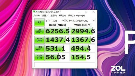 配置豪华是ProArt Q17的主要特点。除了至强处理器、64GB ECC内存之外,它还配备了2TB Raid 0固态硬盘。通过软件测试可以看到,Raid 0之后读写性能几乎翻倍,1GiB数据、5次测试之后,队列深度32、线程为1的情况下,读取速度高达6256.5MB/s,写入速度高达2994.6MB/s;4KiB、队列深度8、线程为8的情况下,读取速度高达1437.4MB/s,写入速度高达1367.6MB/s,性能表现卓越!