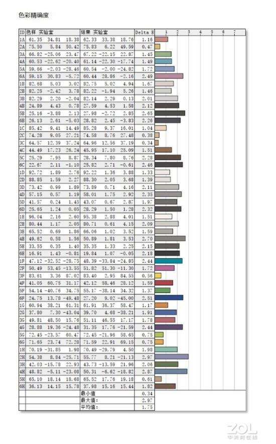 首先来看色彩精确度,通过48色测试标准可以看到,ProArt Q17屏幕色准平均ΔE值为1.75,整体表现非常不错,达到专业级显示器水准。