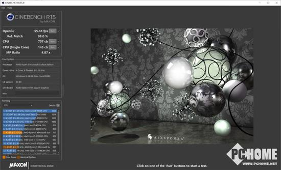 微软Surface Laptop 3 的CINEBENCH R15最终测试结果为:CPU多核成绩为145cb,单核成绩为707cb,总体性能表现出色,与普通的锐龙5 3500U相比,确实表现更强一点,尤其是多核心性能,提升了近10%左右,综合性能表现已经超过了Intel i7 8565U。