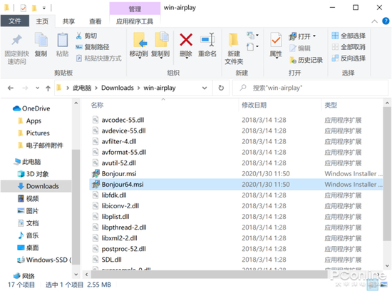 下载完成后,解压压缩包,需要先安装压缩包内的Apple Bonjour广播服务, 安装目录中的Bonjour64.msi或Bonjour.msi即可(看操作系统是否为64位)。