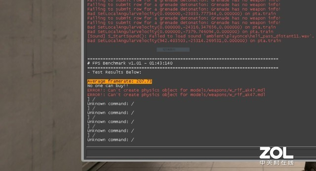 FPS Benchmark中平均帧数:207帧